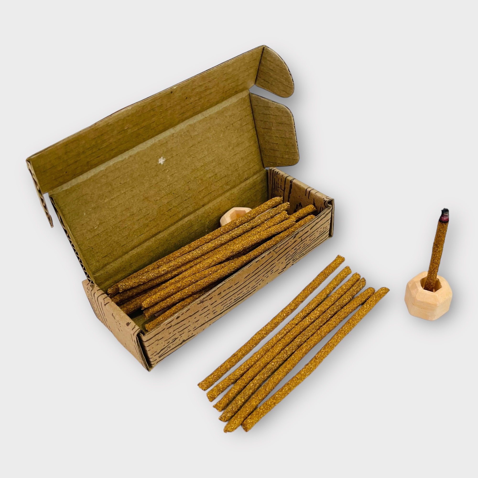Набор из 20 аромапалочек, аромат пало санто + валериана и подставка для благовоний.